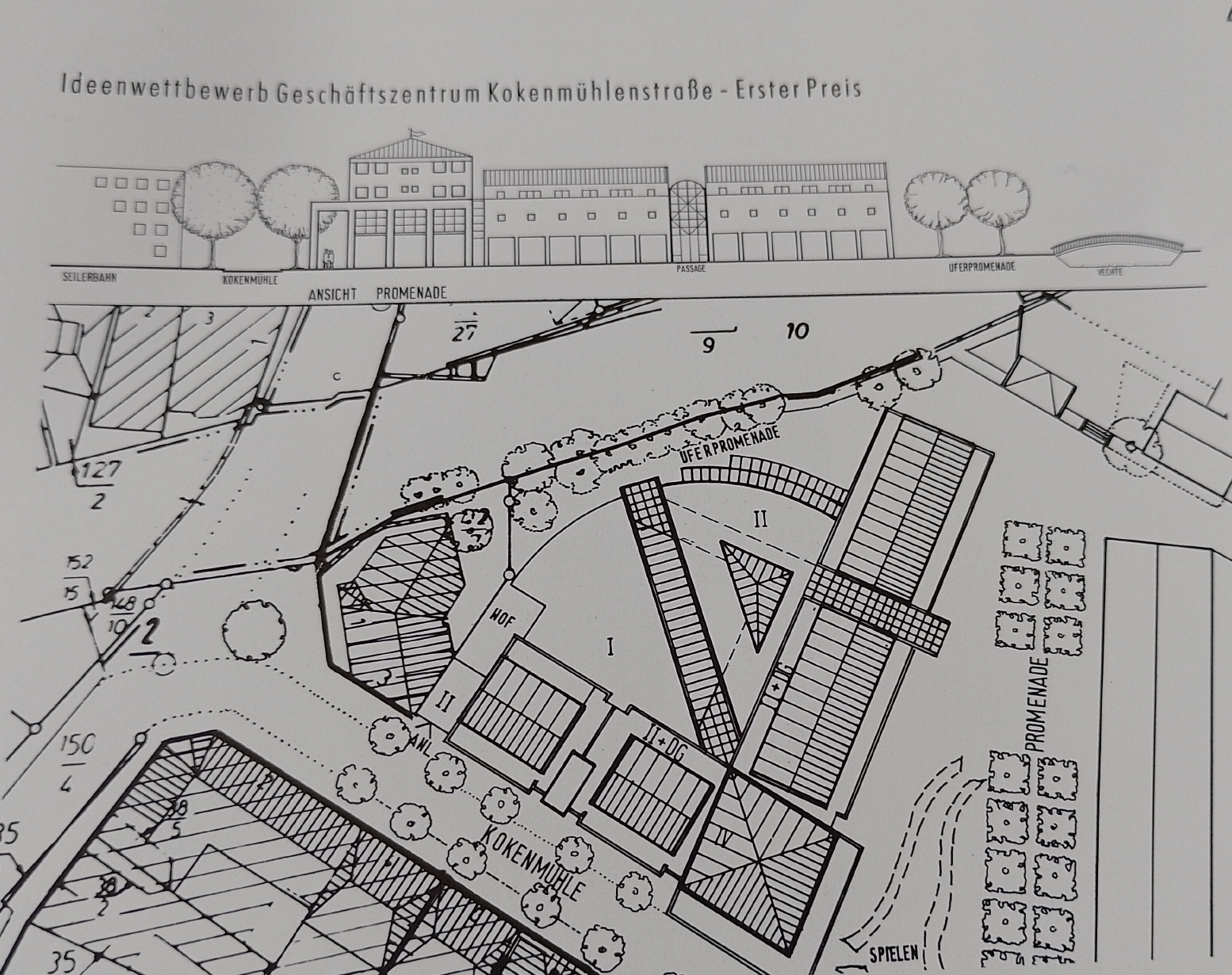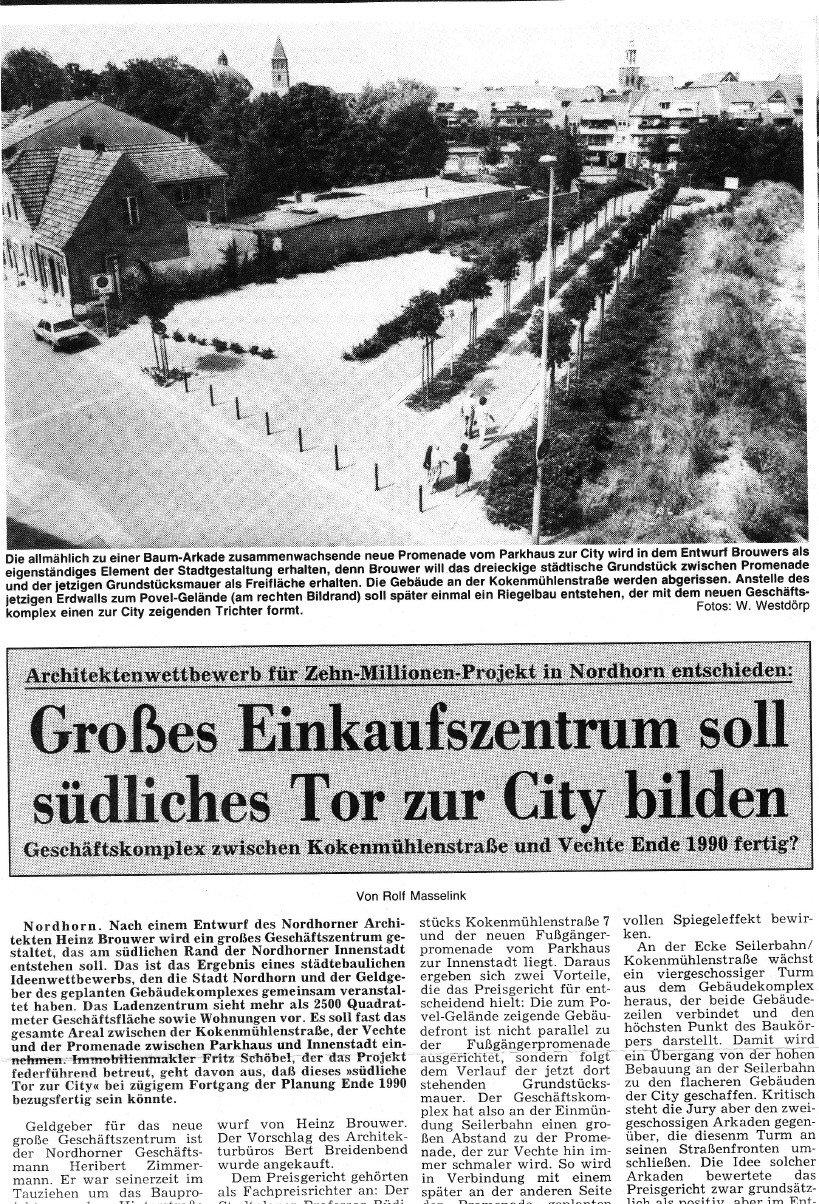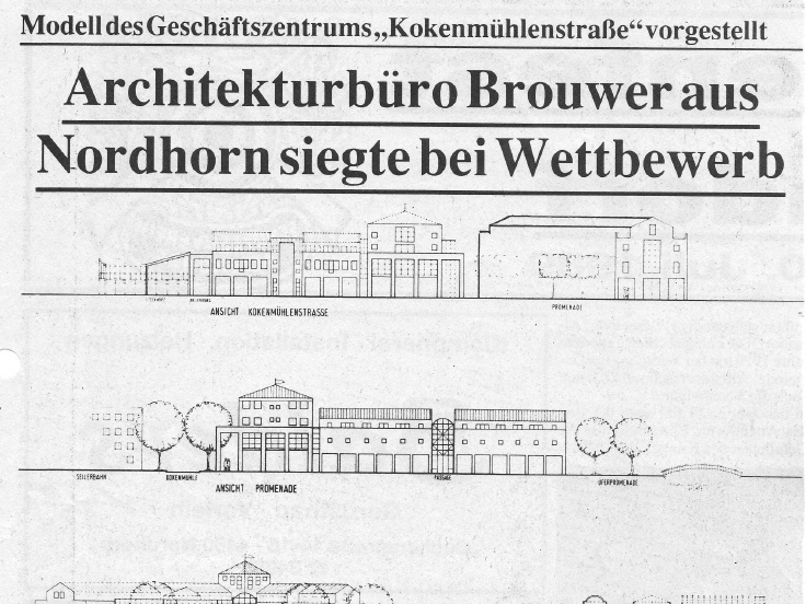Eine weitere städtebauliche Verbesserung sollte die Planung eines großen Geschäftskomplexes zwischen der Kokenmühlenstraße, der Vechte und der Promenade werden.