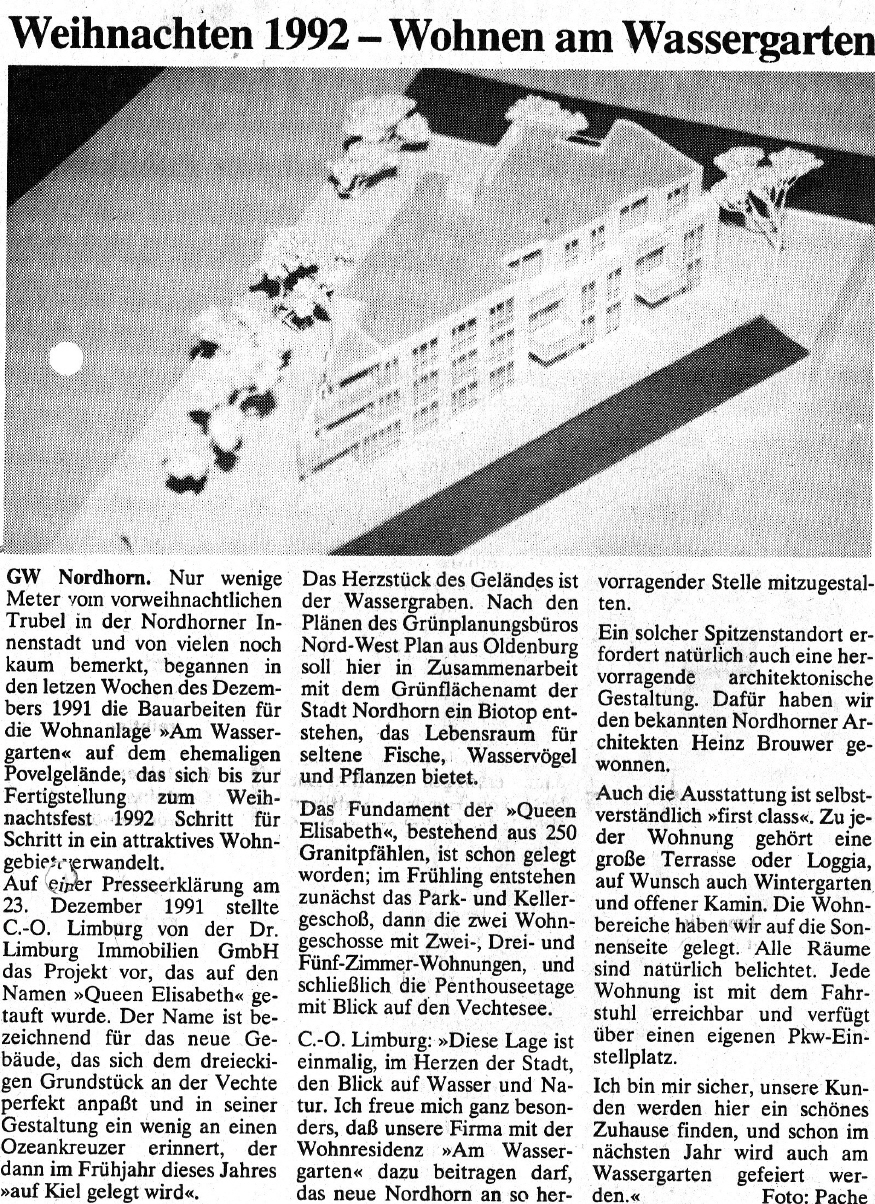 Als viertes Projekt auf dem sanierten Povelgebiet wurde die "Wohnresidenz am Wassergarten" mit drei Vollgeschossen und zehn Wohnungen und einer Tiefgarage erstellt.