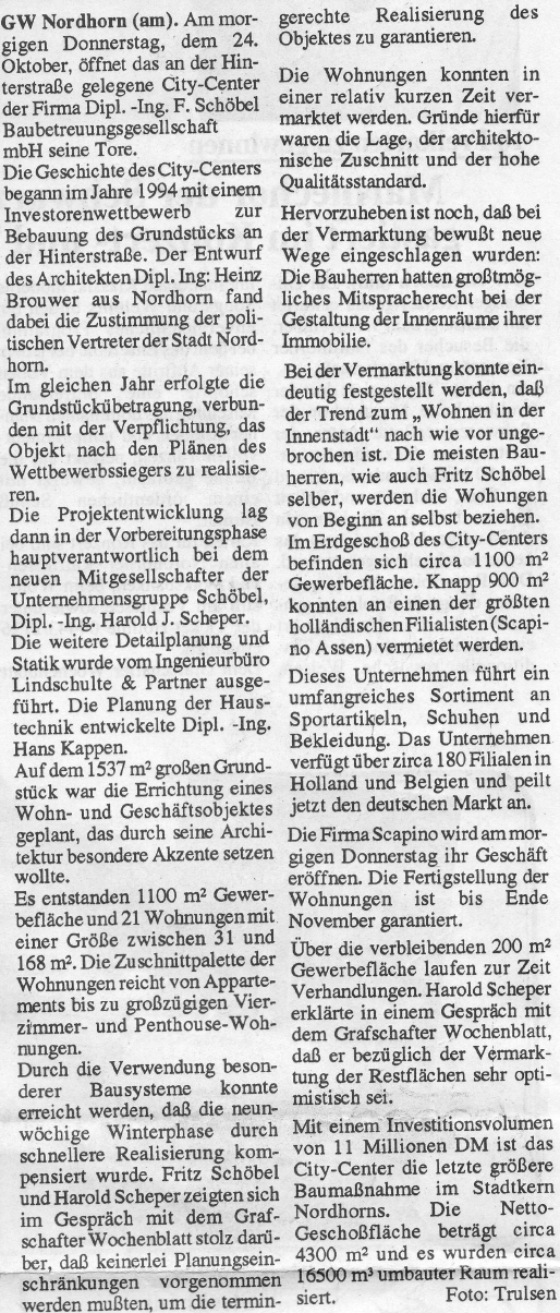 Für einen Nordhorner Investor plante ich auf dem letzten verbleibenden Grundstück in der Innenstadt ein dreigeschossiges Wohn- und Geschäftszentrum.