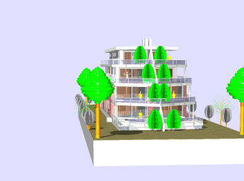 Direkt am Ostseestrand in Großenbrode plante ich ein Ferienhaus in Form eines "IN SEE" stechenden Kreuzfahrtschiffes mit acht Ferienwohnungen und Tiefgarage.
