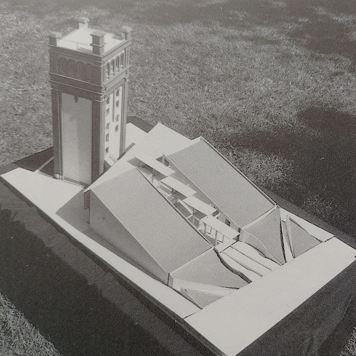 Hierzu erhielt ich von der Stadt Nordhorn den Auftrag, auf dem Povelgelände - unter Einbeziehung des alten Povel-Turms - einen Ergänzungsbau mit Seminar-, Ausstellungs- und Laborräumen zu planen.