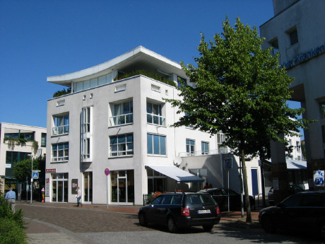 Als erstes Projekt auf dem sanierten Povelgebiet wurde ein Geschäftshaus mit offener Tiefgarage, drei Vollgeschossen und einem Staffelgeschoss mit vier Penthäusern erstellt.